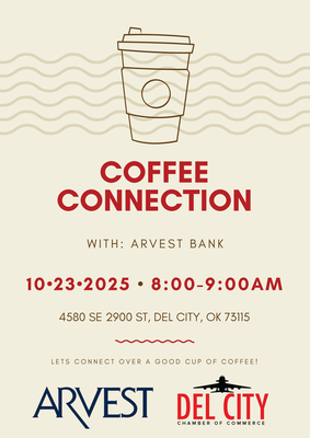 Come join us for our Coffee Connection with Arvest Bank in Del City! With this month having 5 Thursdays, we try to have a second coffee so we can have another opportunity to meet and network.
